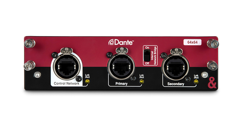 Dante 64×64 & Dante 128×128音頻網(wǎng)卡的設(shè)計(jì)目的在于把dLive集成到廣大的現(xiàn)場(chǎng)、固定安裝和廣播應(yīng)用場(chǎng)景當(dāng)中。它能提供低延遲和大量的通道數(shù)量,以通過(guò)標(biāo)準(zhǔn)的網(wǎng)絡(luò)電纜和硬件連接到Dante網(wǎng)絡(luò)和設(shè)備。