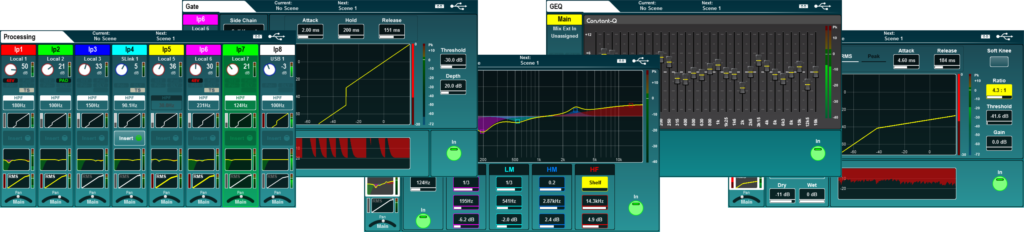 SQ 配備了制作完美組合所需的所有處理能力。48 個(gè)輸入中的每一個(gè)都有 HPF、一個(gè)帶側(cè)鏈和濾波器的超快速門、一個(gè)音樂 4 頻段參數(shù)均衡器,以及用于電平和瞬態(tài)控制和整形的峰值/RMS 壓縮器?;煲粲幸粋€(gè)參數(shù)和 28 段圖形均衡器以及壓縮器作為標(biāo)準(zhǔn),都可以在需要時(shí)隨時(shí)切換。XCVI 核心甚至允許 SQ 中的每個(gè)壓縮器都有自己的并行路徑,而無需擔(dān)心相位或相干性。